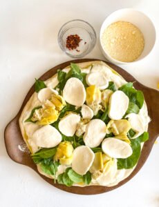 Two favorites smashed together. All the warm creaminess that comes with spinach artichoke dip on top of a perfectly soft and crispy hand tossed pizza crust. This popular appetizer just became the main event and here’s how to do it!