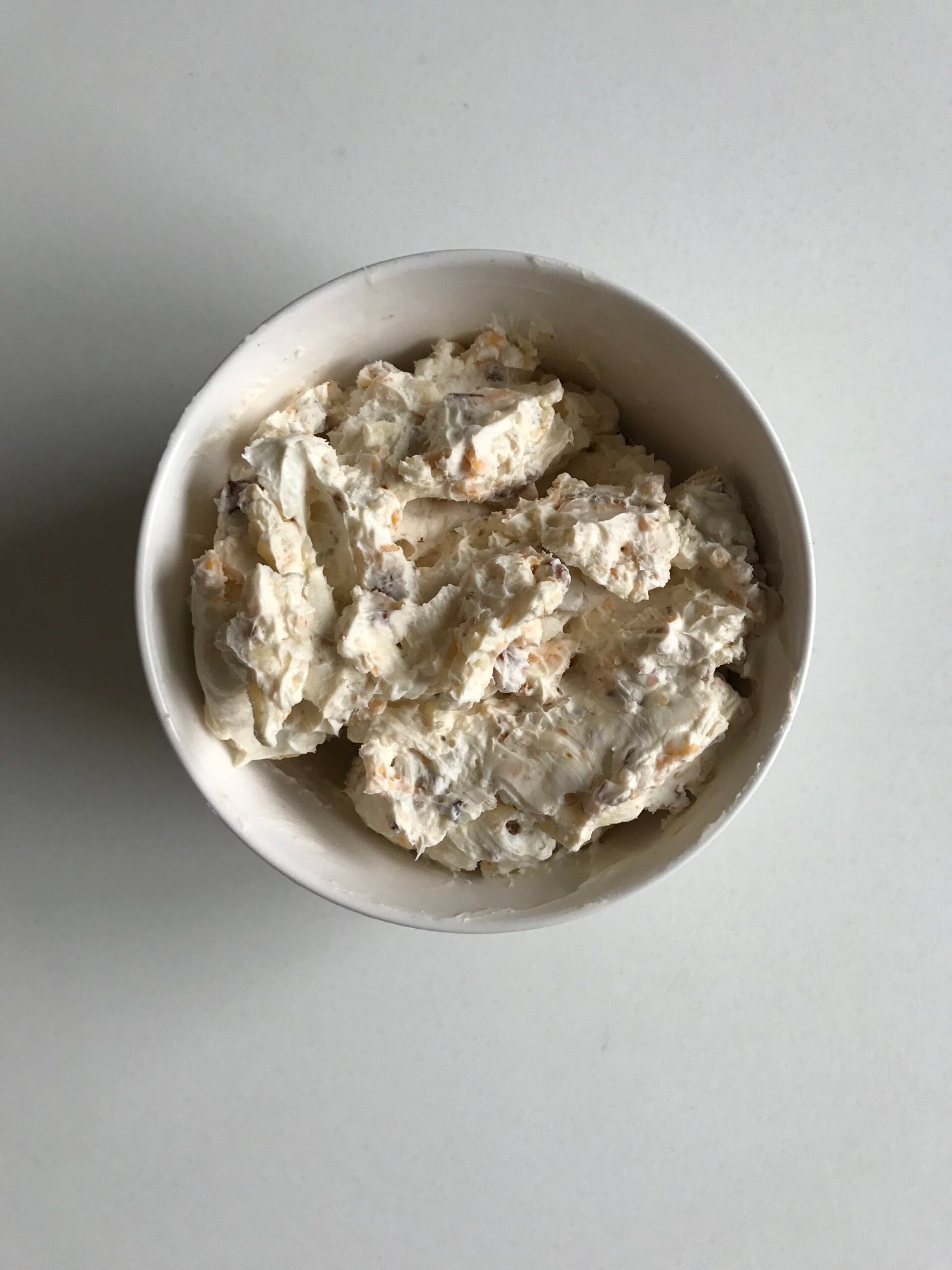 - Mix together the bacon, cream cheese, sour cream and cheeses until combined evenly.