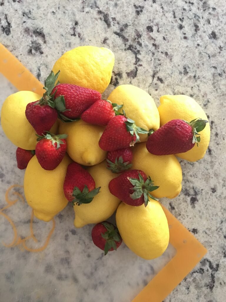 I follow the simple lemonade recipe directions but added a side strawberry step: