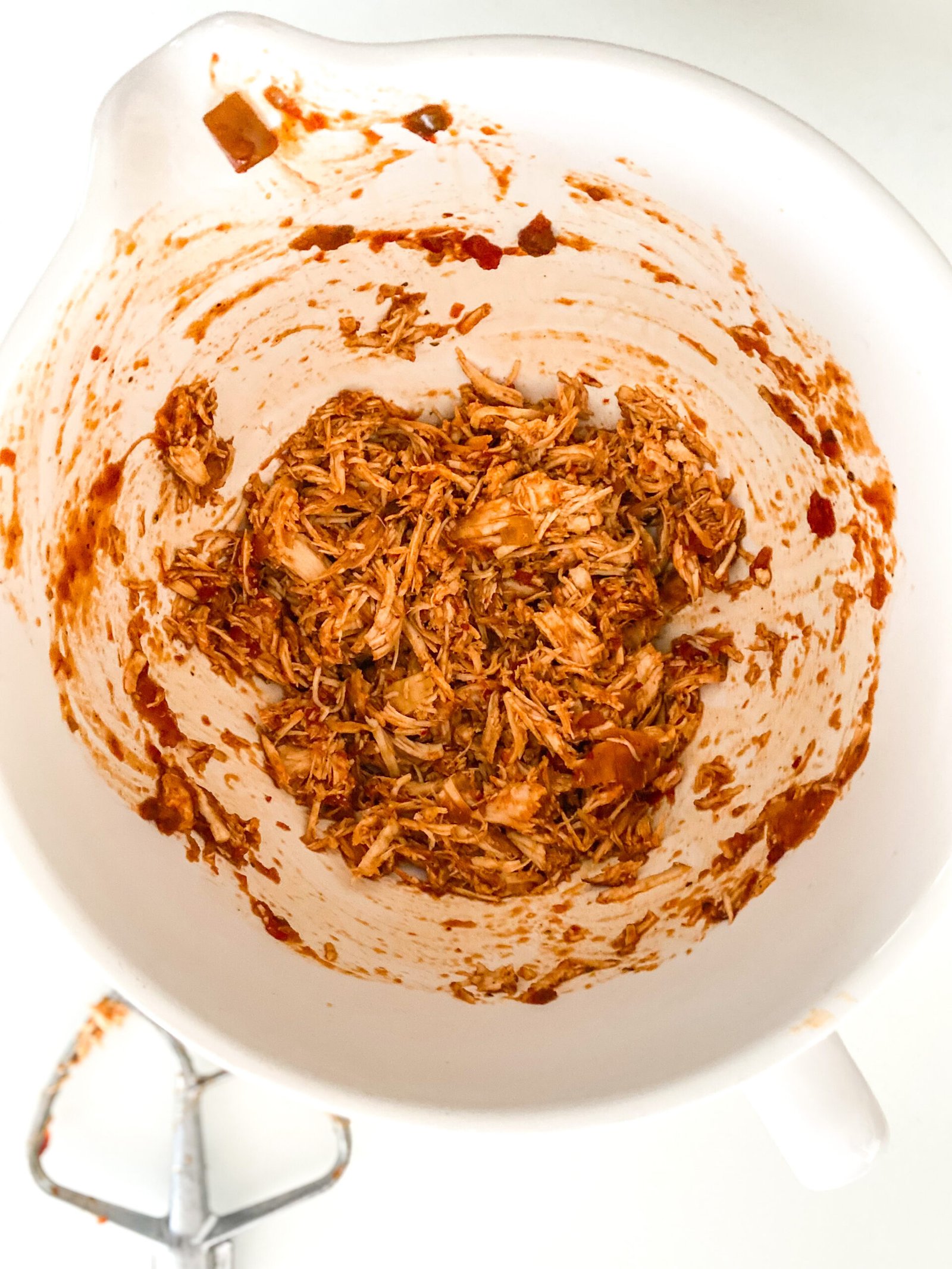 - Shred the chicken. See the blog notes for how to do this using a stand mixer with a paddle attachment.
