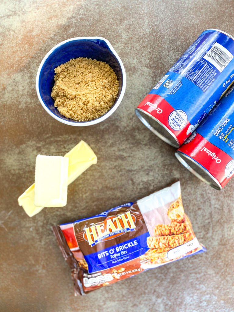 Grab 2 cans of your favorite canned biscuits, a bag of Hersey’s Toffee Bits, butter and brown sugar for this delicious sweet gooey treat. It’s so good.