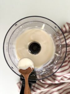 - In a food processor or blender, add in the feta cheese, honey, milk and salt. Blend until smooth. Set aside.
