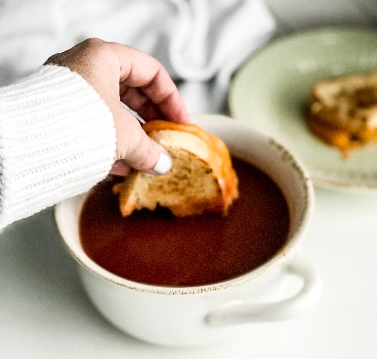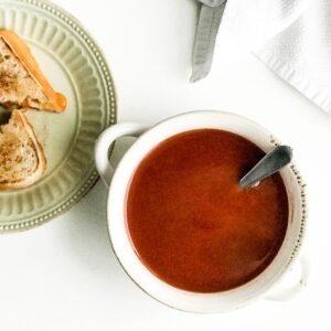 Growing up, tomato soup was one of my favorites. I now realize that this seems strange, why would a little girl love canned tomato soup?! The answer is because it was always served with grilled cheese, once I was done with the warm cheesy sandwich I was also done with the soup. So in reality, I only ate as much soup as it took me to dunk my grilled cheese for each bite. Side thought, have you seen canned tomato soup come out of the can? It’s much like the beloved canned cranberry sauce at Thanksgiving except without the can ring indents.