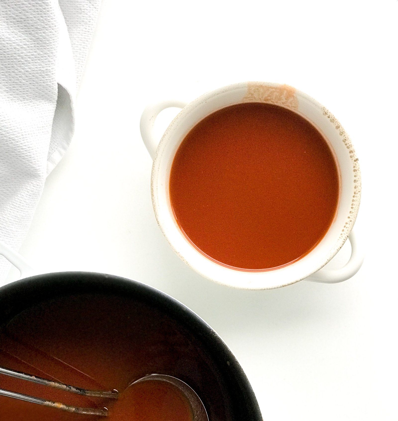 - Once the soup is strained, it's ready to enjoy!