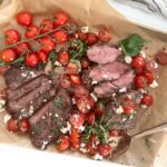 A true summer love, perfectly grilled steak topped with fresh and sweet Mediterranean inspired tomatoes.