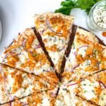 Staying true to the classic flavors, this pizza is a dream come true for anyone who loves buffalo chicken. Please note the cooking times do not reflect the preparation of the chicken, cooking times will vary based on method, please see blog notes.