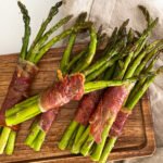 Yummy sweet caramelized brown sugar, salty crispy prosciutto wrapped around perfectly roasted asparagus bundles are an absolute crowd pleaser, a must have for any holiday entertaining.
