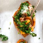 The spicy chorizo, soft wilted kale, creamy melted cheese all stuffed into a sweet potato makes the most satisfying bite, jam-packed with flavor. It's an easy recipe for any busy weeknight and can even be prepped ahead.