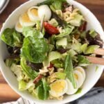 My favorite lunch salad for over a decade. Easy to make your own, the best part twisty pasta that is tossed. The recipe below is for one base-salad, feel free to add in any extra toppings. If you want to prep ahead for the week, make to increase the quantities.