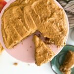 The perfect breakfast cake. Soft, moist, full of apples and spices, topped with crunchy sweet peanut butter frosting.