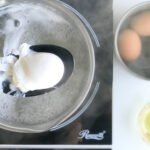 Once the water is swirling, dip your ramekin halfway in and pour your egg into the water. With your spoon, swirl the water again gently. Repeat this with 2-3 more eggs. Or you can do one at a time, it's up to your comfort level.