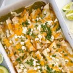 Bake 20 minutes until the tortillas are crispy. Top with the remainder salsa verde and your Mexican cheese. Bake for another 10-15 minutes until the cheese is melted.