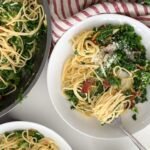 A twist on the classic. Spaghetti and soft wilted kale tossed in a creamy egg sauce topped with Parmesan cheese and bacon. So simple. Perfect for any weeknight when you need something quick and easy.