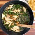 The perfect cozy weeknight meal. Warm, spicy and comforting With chicken sausage, kale and traditional pierogies make this a completely irresistible weeknight dinner.