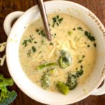 (Optional) use your immersion blender or blender to make your soup more smooth. I like some broccoli florets in my soup so I only blended ½ of my soup. It's up to you. If you use a blender, make sure to only fill it about ½ way at a time, hot liquid will expand while your blend and it will pop up and out of the blender.